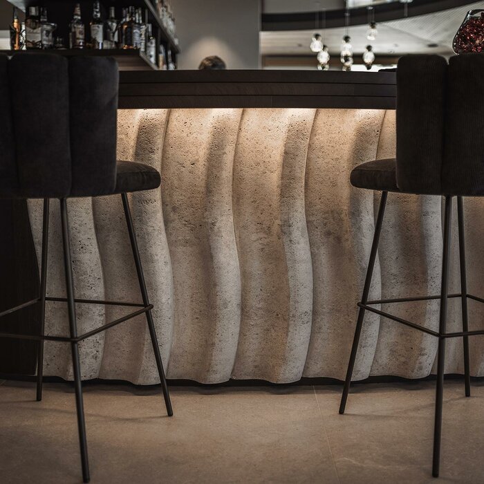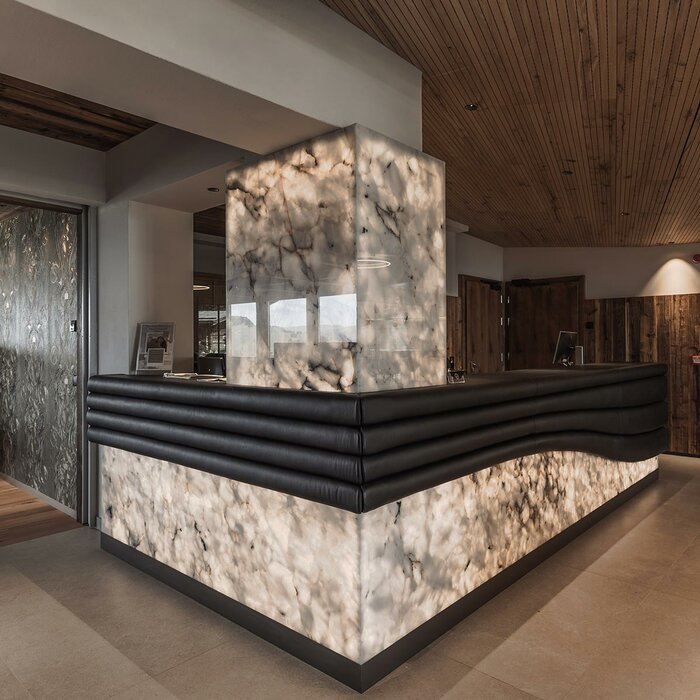 From the model to the finished bar counter made of dolomite and the reception counter made of quartz crystal: an overall concept was designed and realised at the "Santner" hotel on the Seiser Alm. These customised pieces combine functionality and aesthetics, give the hotel an elegant and luxurious atmosphere and reflect the high-quality local craftsmanship .