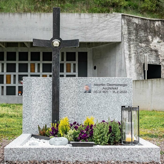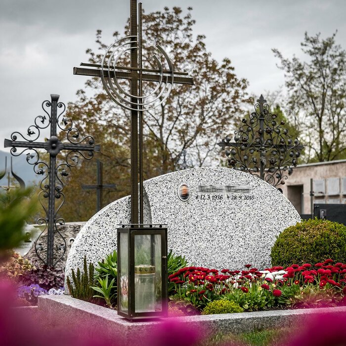 Whether gravestone or urn slab - both are handcrafted from natural stone according to your wishes. You also receive the accessories from a single source. This allows us to offer you the ideal overall solution and complete the gravestone as a harmonious unit.