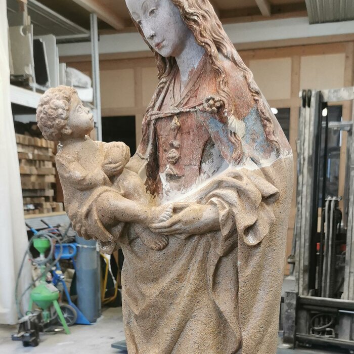 Una scultura di Madonna gotica del XV secolo, di cui si era conservato solo il busto parziale originale, è stata ricostruita per un cliente privato in Germania. Le parti mancanti della scultura sono state accuratamente aggiunte in pietra arenaria per riportarla alla sua bellezza originale.